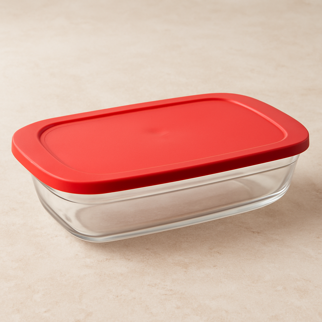 - Modelo: Assadeira de vidro com tampa vermelha 1,6L