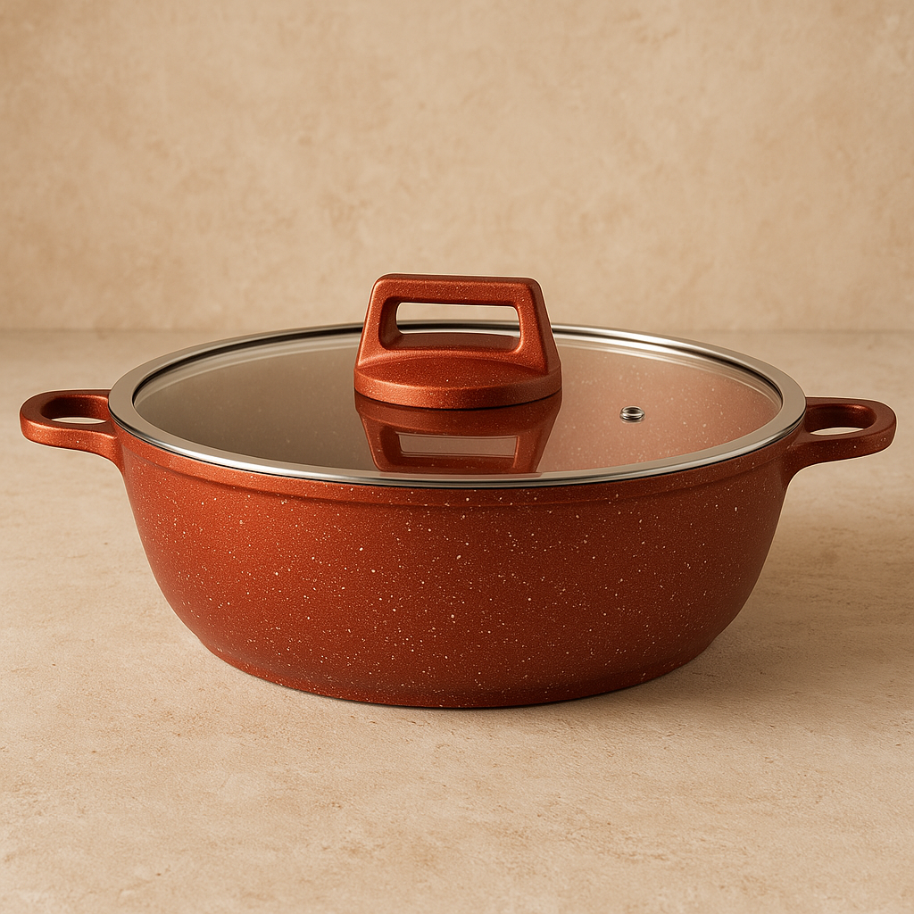 Descubra a Caçarola Baixa Moda do Chef em Alumínio Cobre 5L, onde tradição e inovação se encontram. Inspirada nas cozinhas italianas, esta caçarola é perfeita para preparar receitas que aquecem a alma e o coração. Seu design elegante em cobre não só embeleza sua cozinha, mas também proporciona uma distribuição uniforme de calor, garantindo pratos cozidos à perfeição. Com capacidade de 5 litros, é ideal para refeições em família, trazendo o verdadeiro espírito mediterrâneo para sua mesa. Feita com materiais de alta qualidade, como alumínio, vidro e inox, esta peça é durável e prática, tornando-se um investimento inteligente para quem ama cozinhar. Transforme cada refeição em um evento especial com a sofisticação e funcionalidade que só a Caçarola Baixa Moda do Chef pode oferecer.