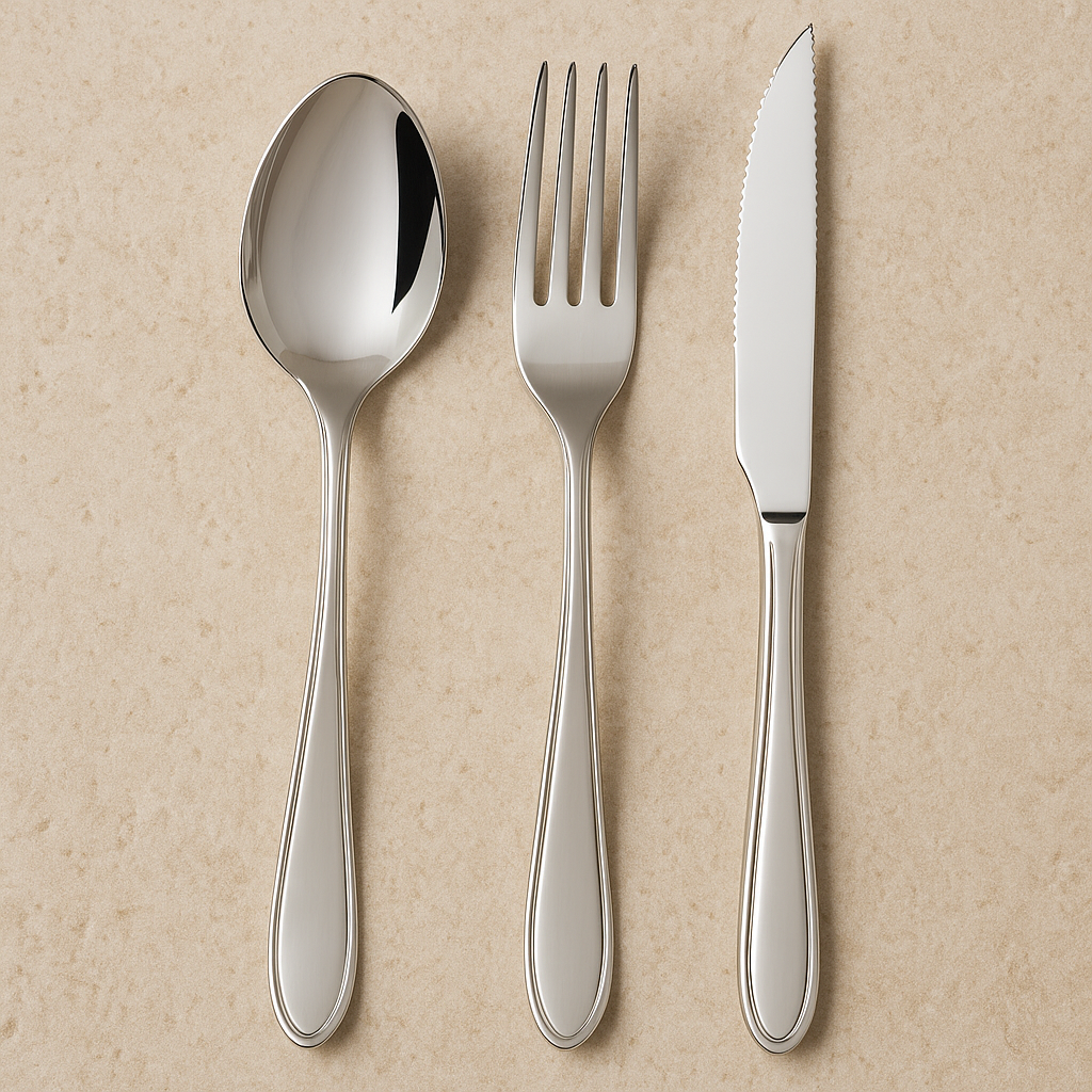 - Conteúdo do conjunto: 05 colheres de mesa, 05 garfos de mesa, 05 facas para churrasco, 05 colheres para chá, 05 colheres para café, 05 garfos para torta