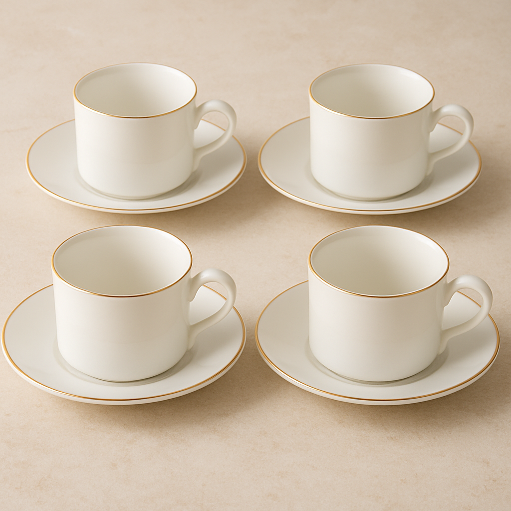 - Conteúdo do conjunto: 04 xícaras 200 ml, 04 pires