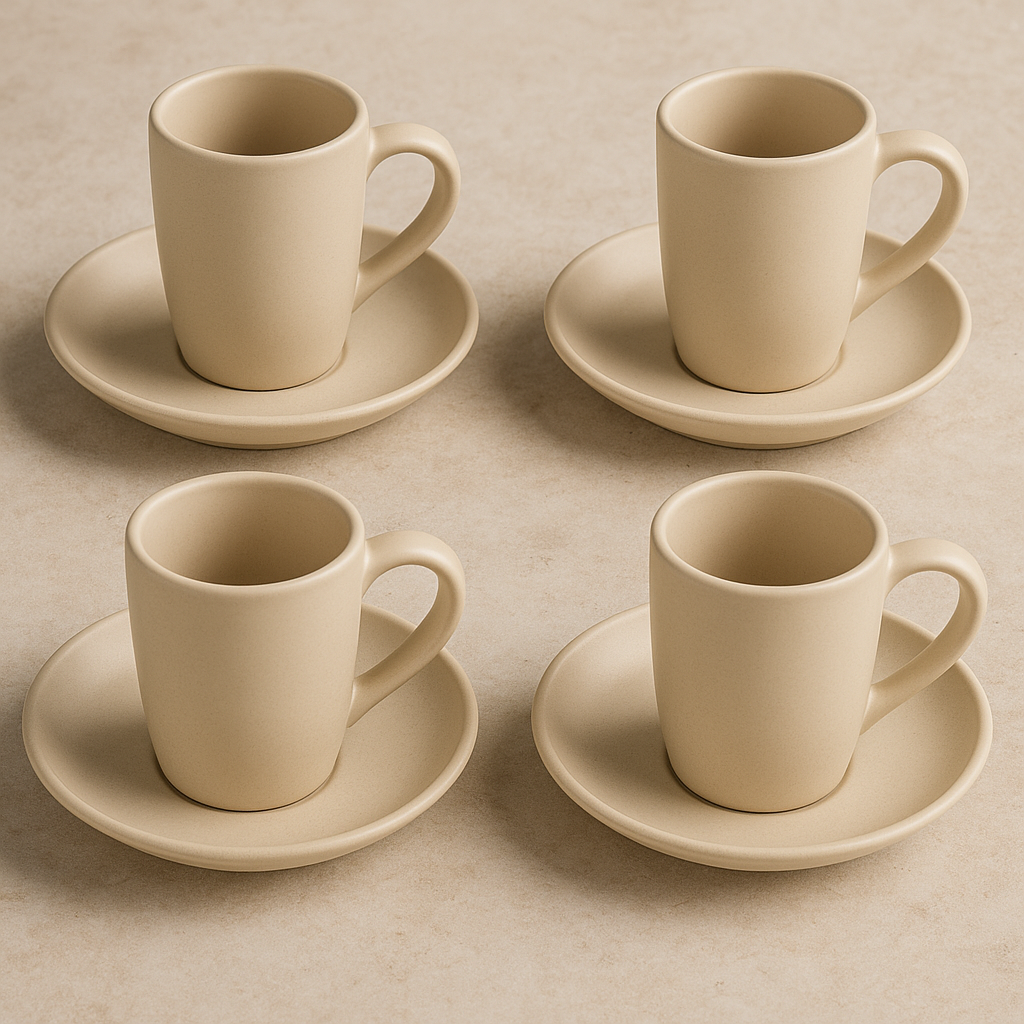 Jogo de xícaras de cerâmica Sarah bege 130 ml 08 peças