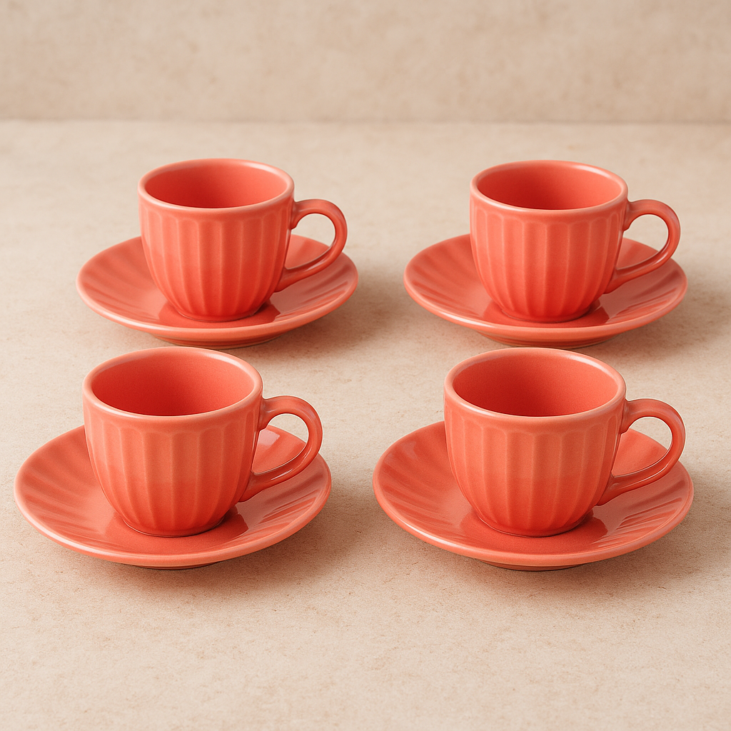 - Conteúdo do conjunto: 04 xícaras de 150ml cada e 04 pires