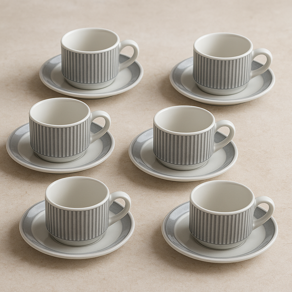 - Conteúdo do conjunto: 06 xícaras (90 ml) e 06 pires