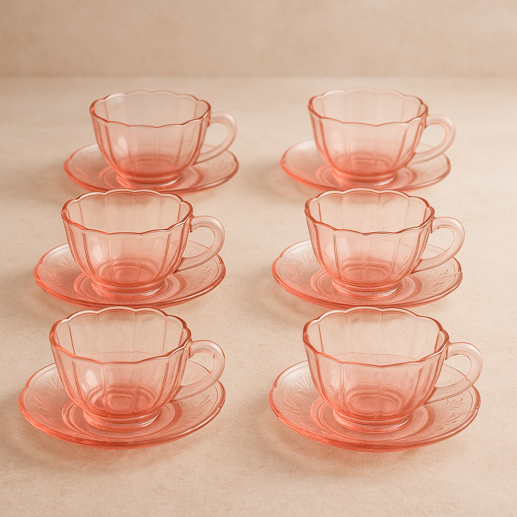 Jogo de xícaras de vidro Peach rosa 90 ml 12 peças
