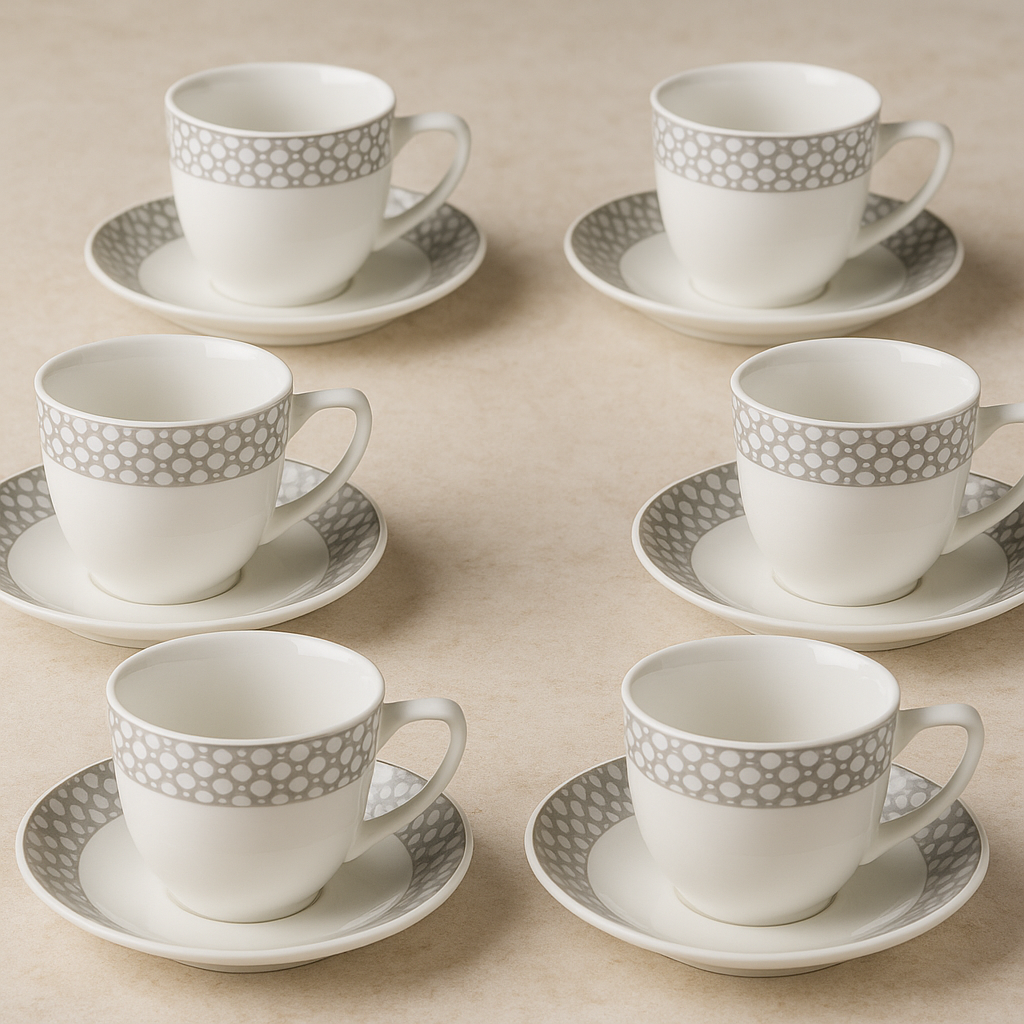 - Modelo: Jogo de xícaras em cerâmica para café com pires 12 peças