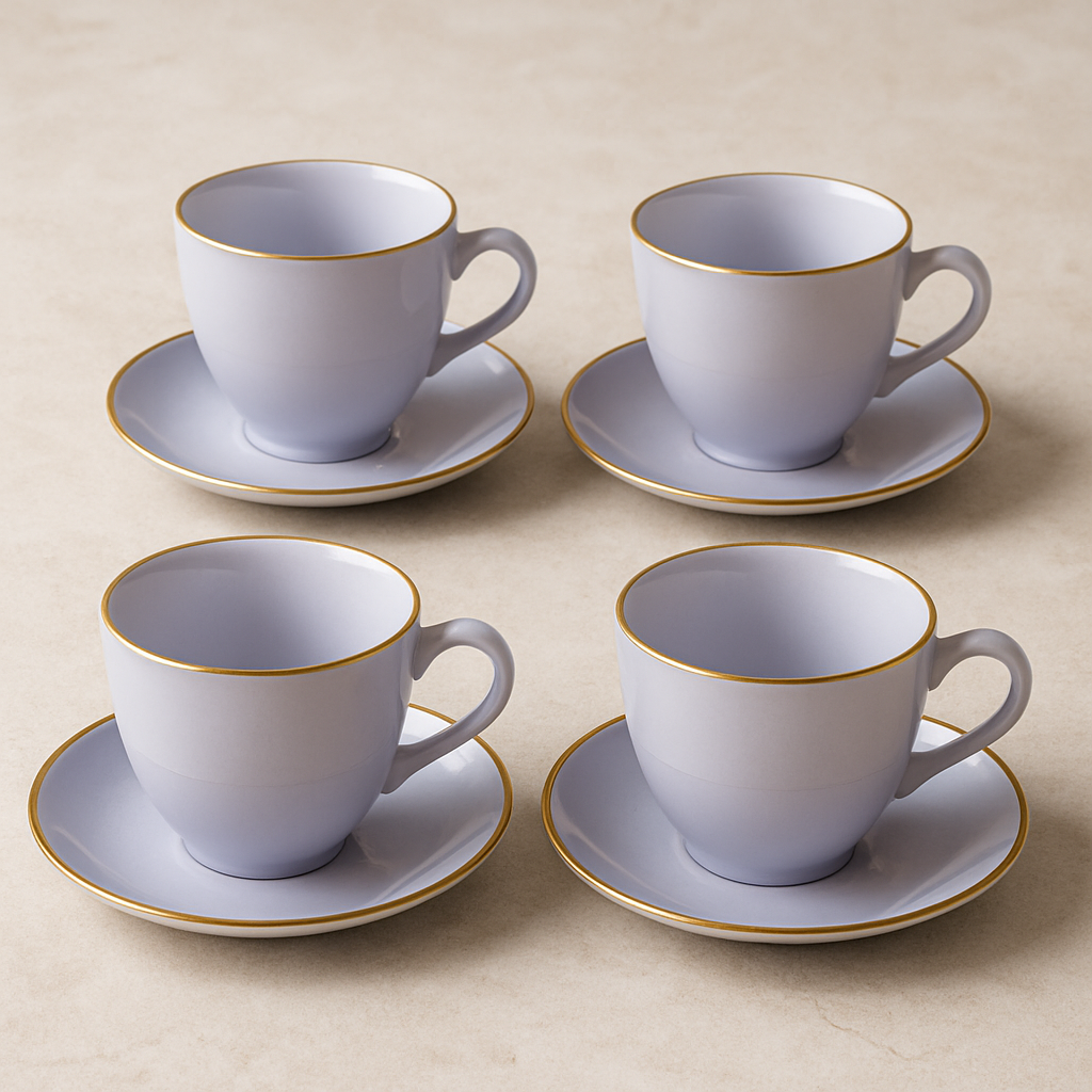 - Conteúdo do conjunto: 4 xícaras de 170ml e 4 pires