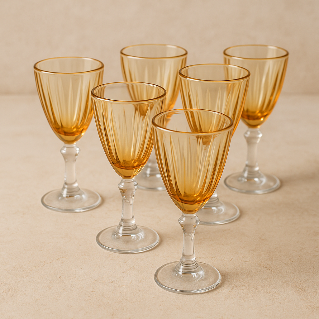 Jogo de Taças de Vidro Dominic com Filete Dourado Âmbar 6 Peças