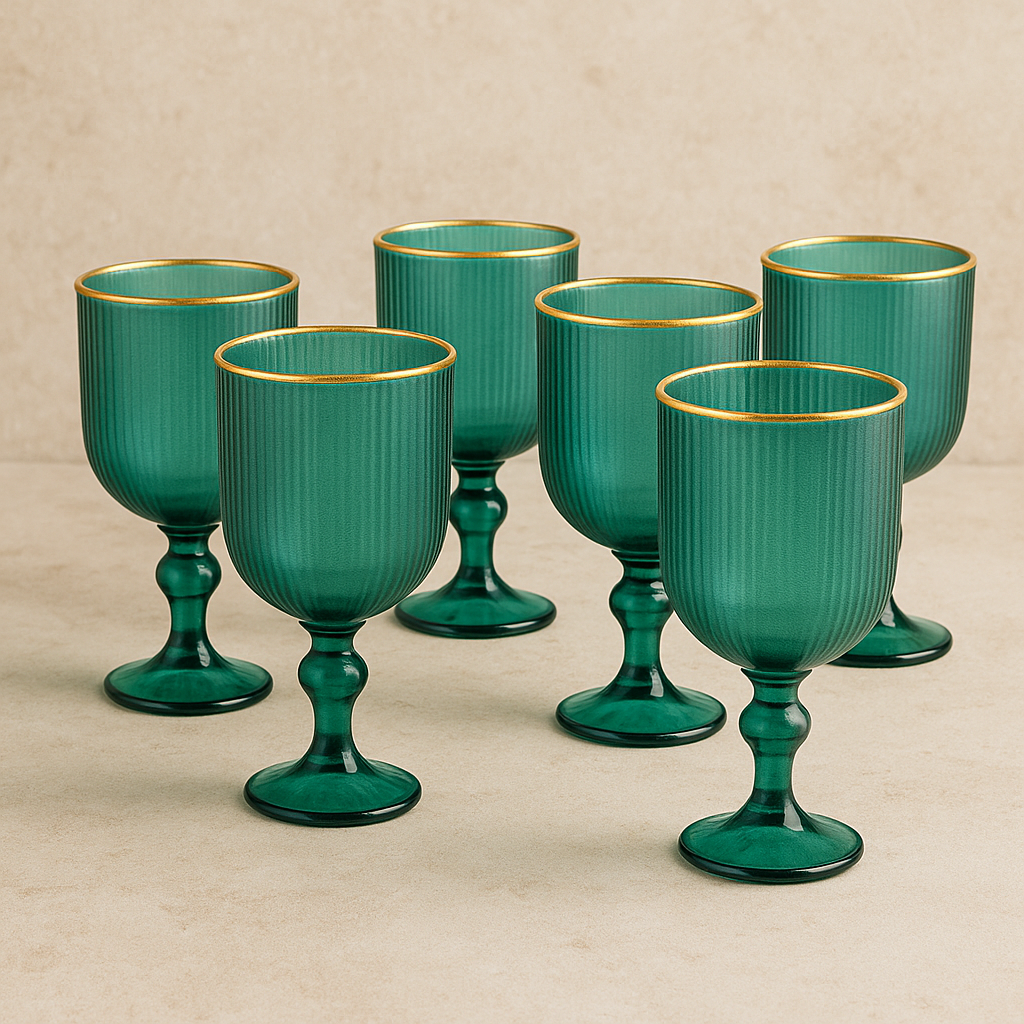 Transforme sua mesa em um cenário mediterrâneo com o Jogo de Taças de Vidro Cameratta. Cada uma das 6 taças, com capacidade de 365 ml, é meticulosamente adornada com um filete dourado, destacando o brilho do vidro verde. Ideal para jantares elegantes ou celebrações casuais, estas taças evocam a autenticidade italiana e a sofisticação atemporal. Feitas para durar, são a peça central perfeita para qualquer ocasião, garantindo que cada brinde seja inesquecível.