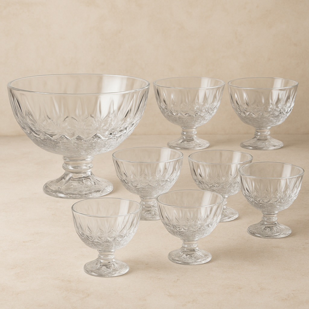 Transforme cada sobremesa em um momento especial. O Jogo de Taças de Vidro Delicate traz elegância e sofisticação à sua mesa. Composto por seis taças de 210 ml e um bowl central de 1,9 litros, este conjunto é perfeito para servir suas delícias com charme.