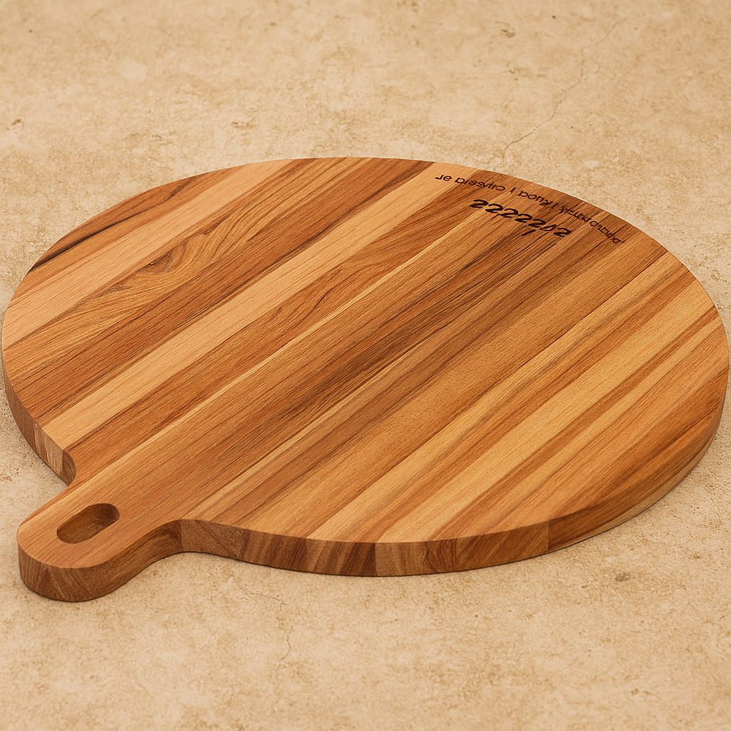 Tábua de Queijo em Madeira Teca Kawaii 30x35cm