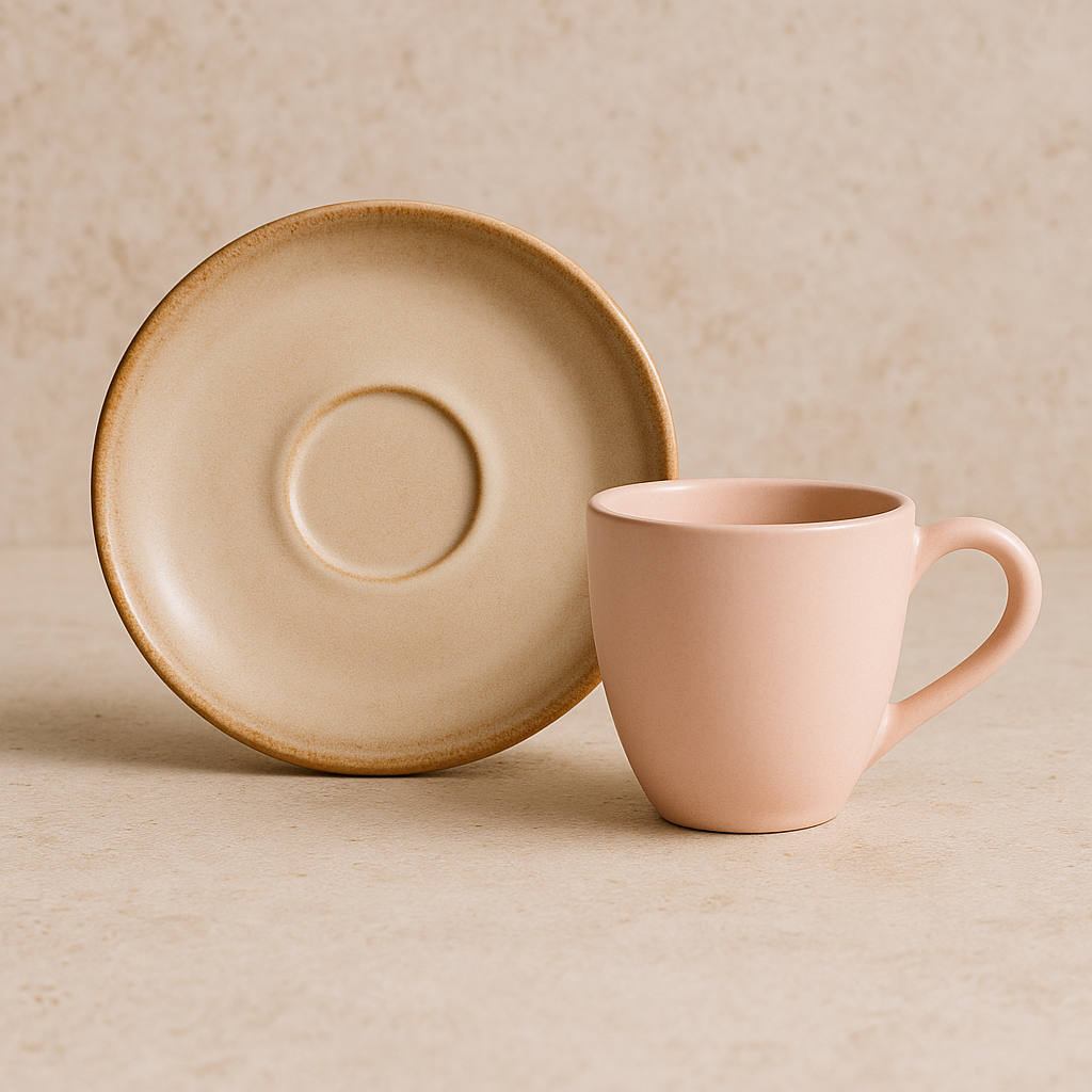 - Modelo: Xícara de Cerâmica com Pires Bio Raio 120 ml